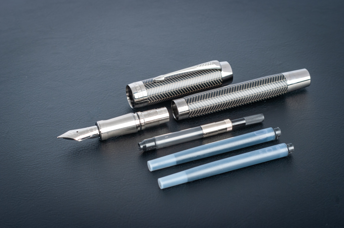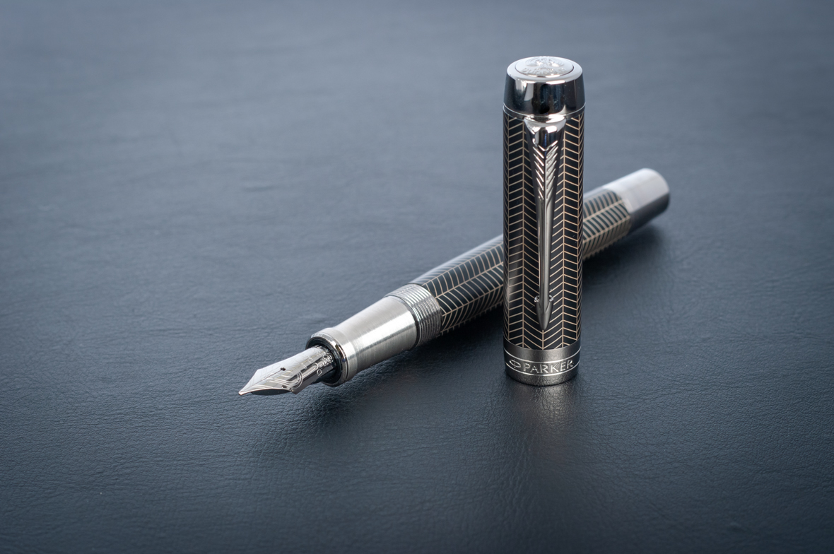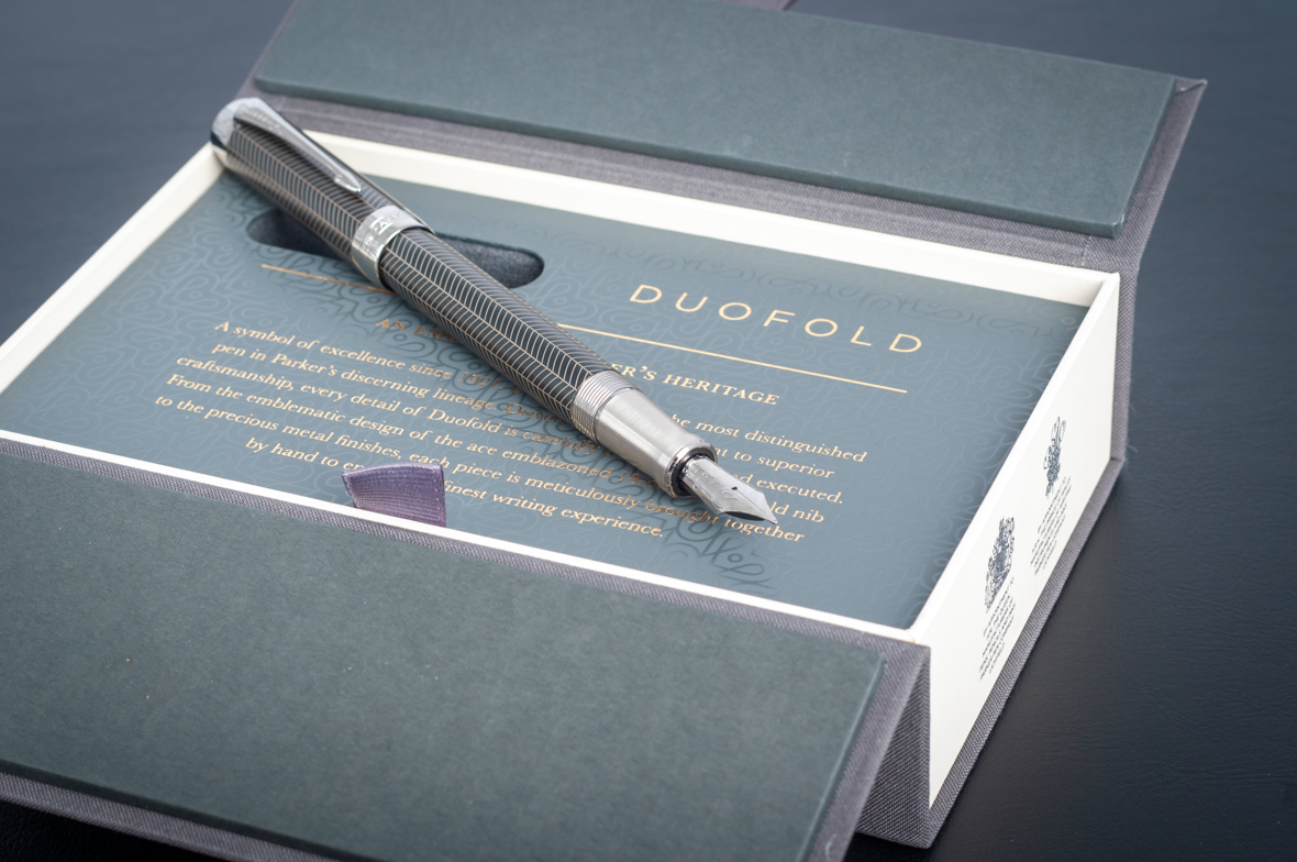 Перьевая ручка Parker Duofold Prestige Centennial Black Chevron CT от официального дилера Parker в Уссурийске. Вы можете дополнительно заказать гравировку, которая подчеркнет Вашу оригинальность и придаст памятность статусному подарку. Все ручки Паркер поставляются в фирменном футляре.